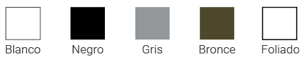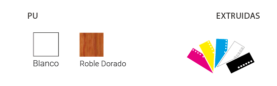 Disponemos del color Blanco y Golden Oak para las Lamas con PU, y toda la gama de color para Pinturas y Anodizados para las Lamas Extruidas.